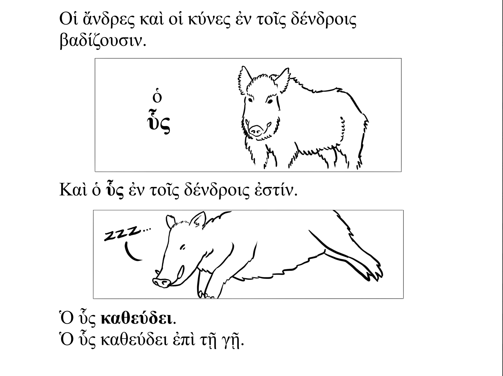 • learn to read easy Ancient Greek sentences with an entertaining story